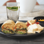 Serve alongside cheese slices, sliced mango, sliced apple, and cucumber water.